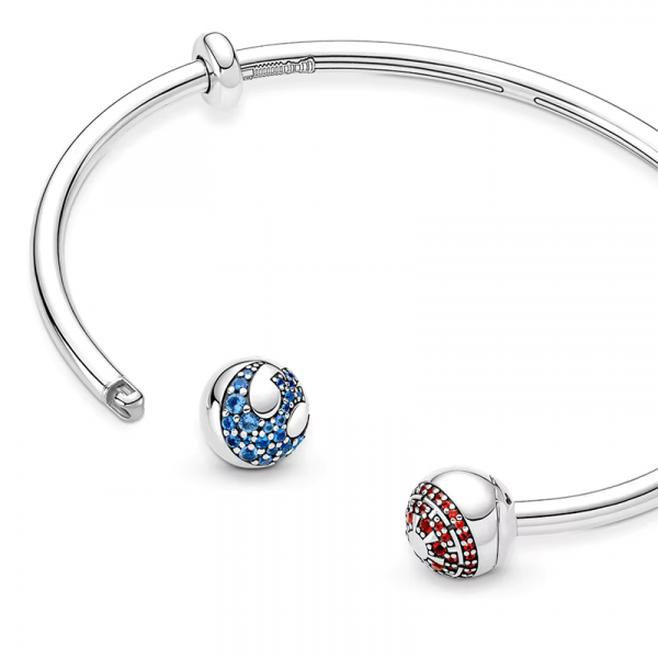 The decorative planets on the ends push and twist off to allow charms to be added or removed.